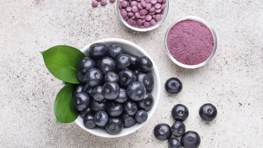 アサイーは、ポリフェノール・鉄分・食物繊維を豊富に含む栄養フルーツ。