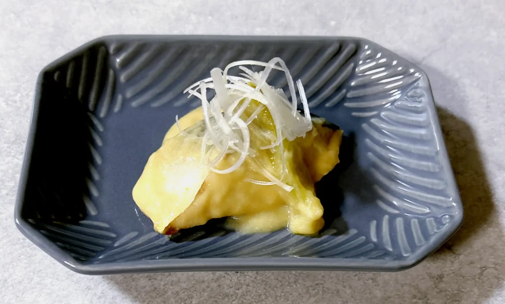 器に盛り付け、白髪ねぎを飾る。完成です。