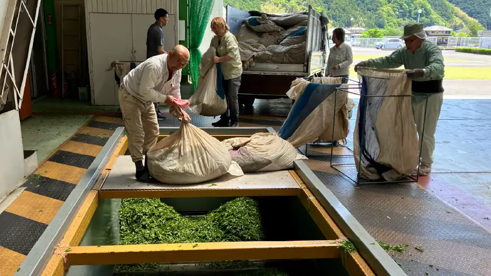 佐藤園では、茶園で収穫してから2時間以内に加工を開始し、鮮度の高いうちに荒茶まで仕上げます。新茶ならではの香りを損なわないためです。