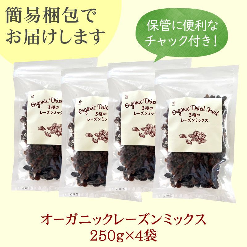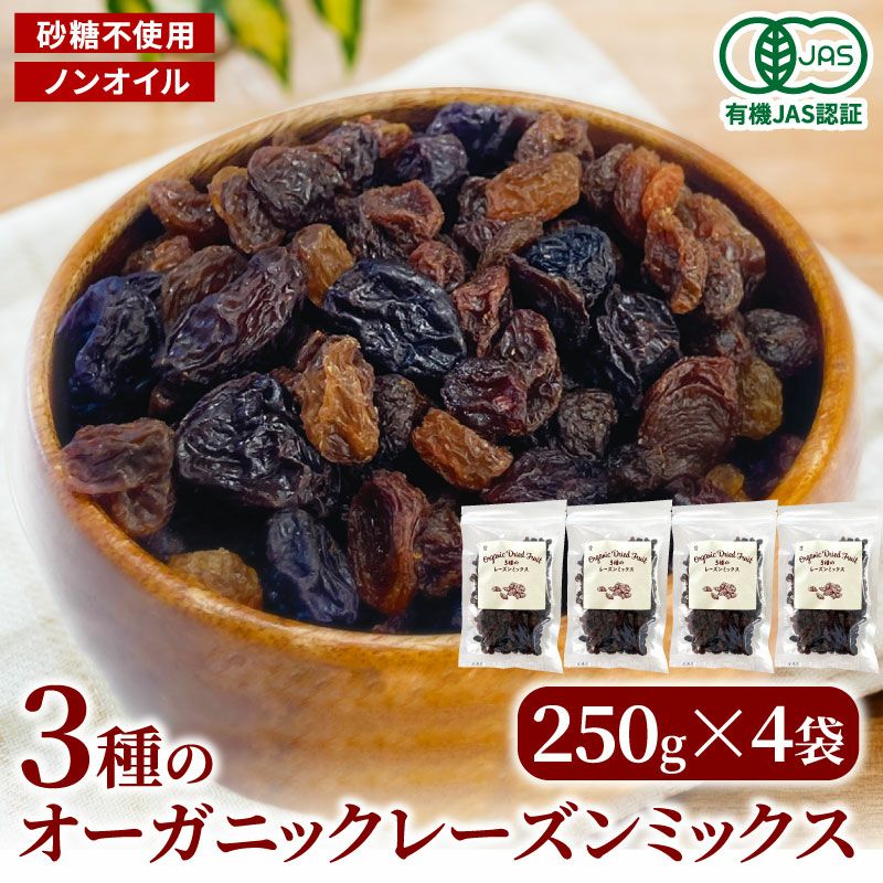 オイルフリー・砂糖不使用!レーズン本来の味わい オーガニック 3種のレーズンミックス250g×4袋