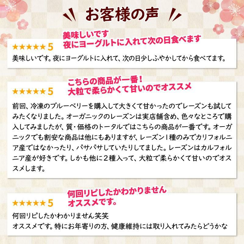 セット内容 有機カリフォルニアレーズン、有機ジャンボフレームレーズン、有機サルタナレーズンをミックス ノンオイル