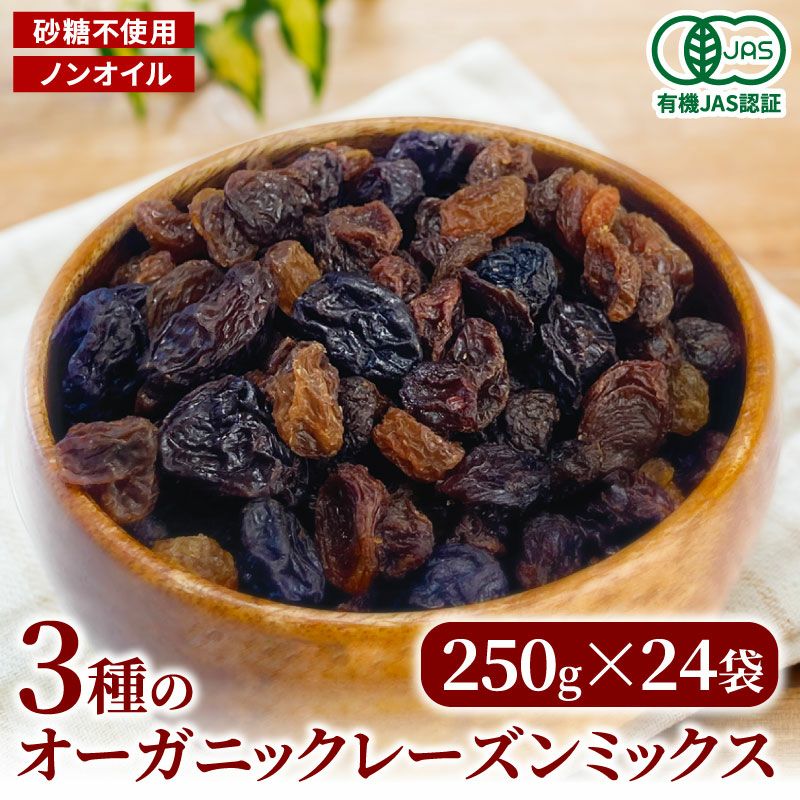オイルフリー・砂糖不使用!レーズン本来の味わい 【業務用】オーガニック 3種のレーズンミックス250g×24袋
