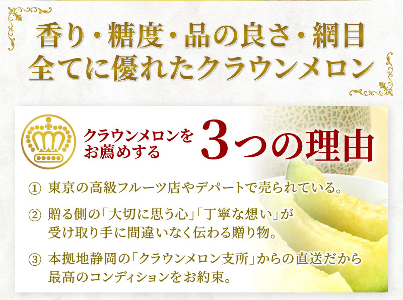 果物の王様といわれるマスクメロンの最高峰、静岡産クラウンメロン。