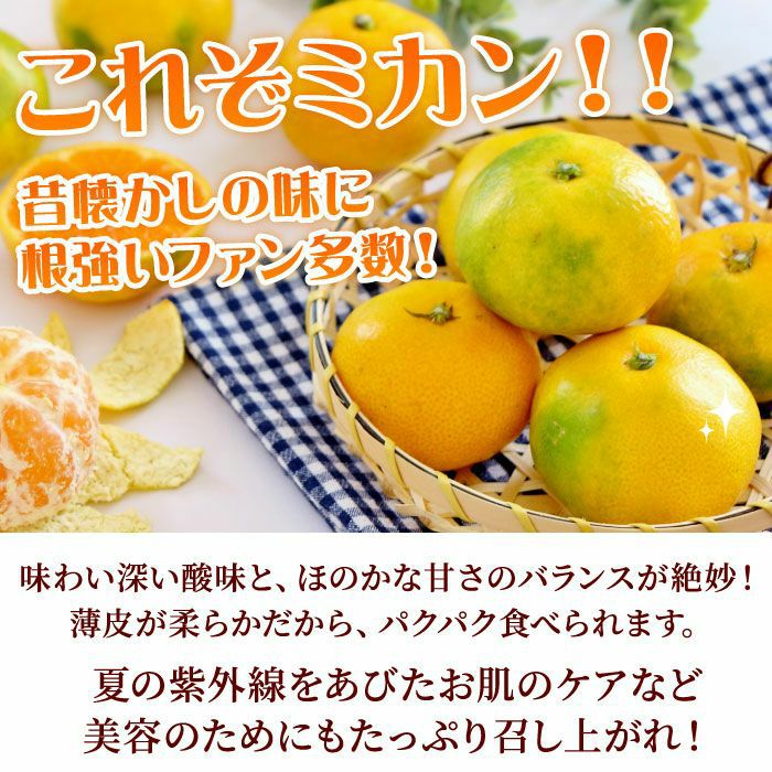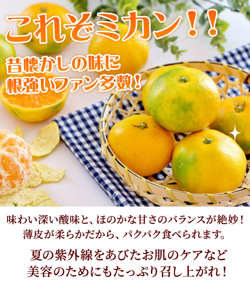 味わい深い酸味と、ほのかな甘さのバランスが絶妙。果肉を包む薄皮が薄くて柔らかいから、パクパク食べられます。みかんの爽やかな香り、ビタミンやクエン酸は、夏疲れの残る初秋にピッタリ!夏の紫外線をあびたお肌のケアなど、美容のためにもたっぷり召し上がってください。