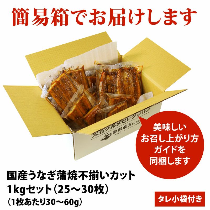 国産うなぎ 蒲焼き 不揃いカット 簡易箱 総重量約1kg