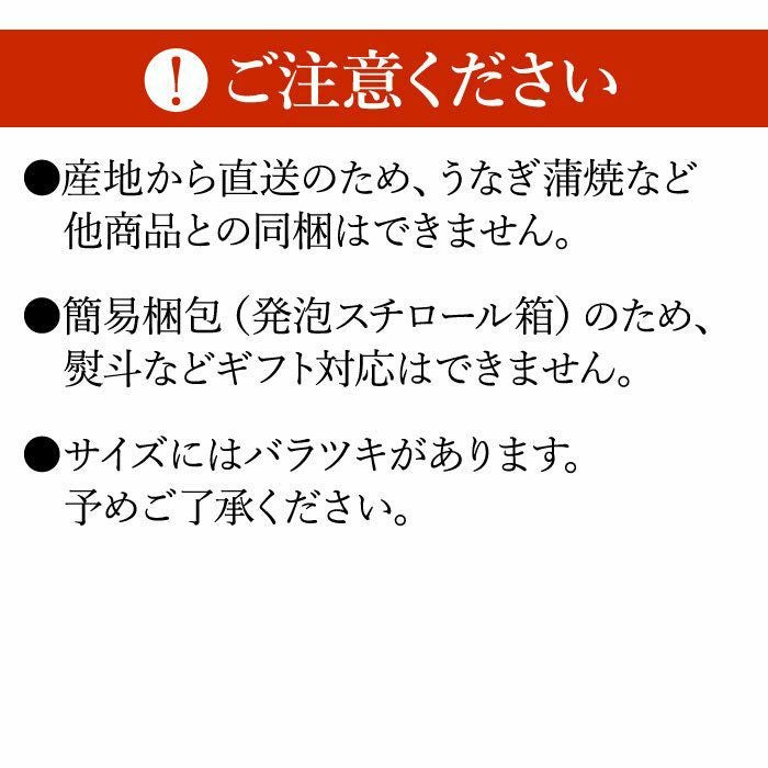 ★産地から直送のため、うなぎ蒲焼など他商品との同梱はできません。