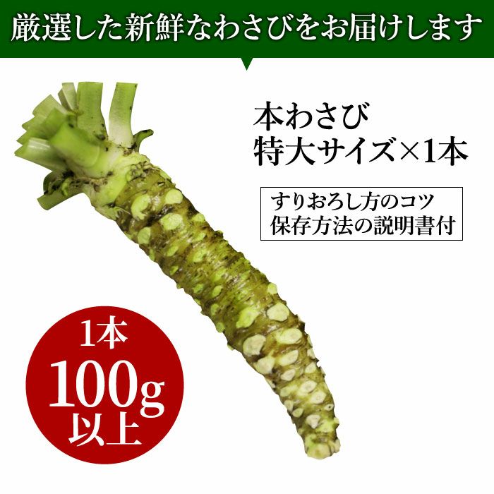 わさび栽培発祥の地「有東木(うとうぎ)」の本わさび<特大サイズ>1本