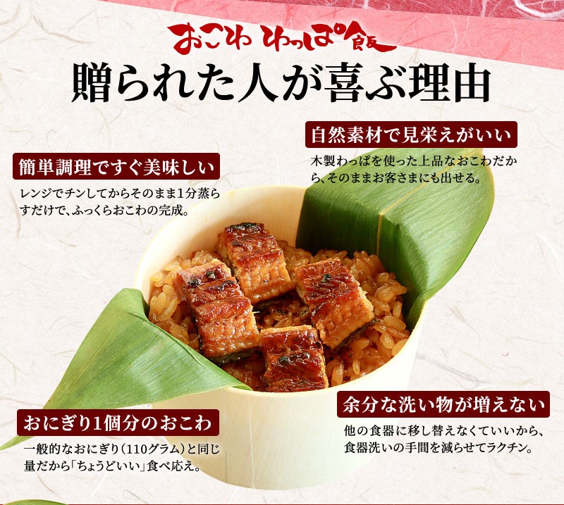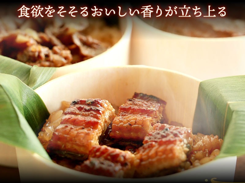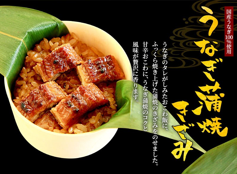 甘辛おこわに、うなぎ蒲焼のコクと 風味が贅沢に香ります。