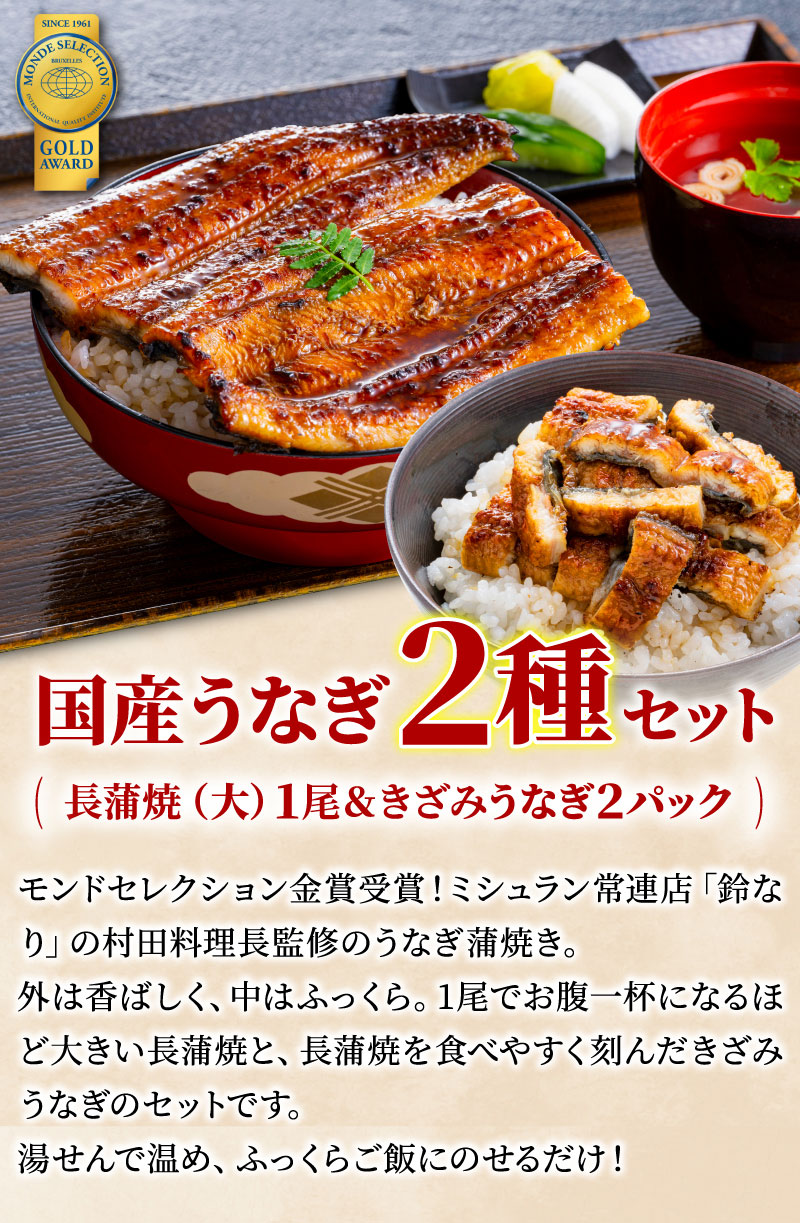 国産うなぎ2種セット(長蒲焼(大)1尾&きざみうなぎ2パック)