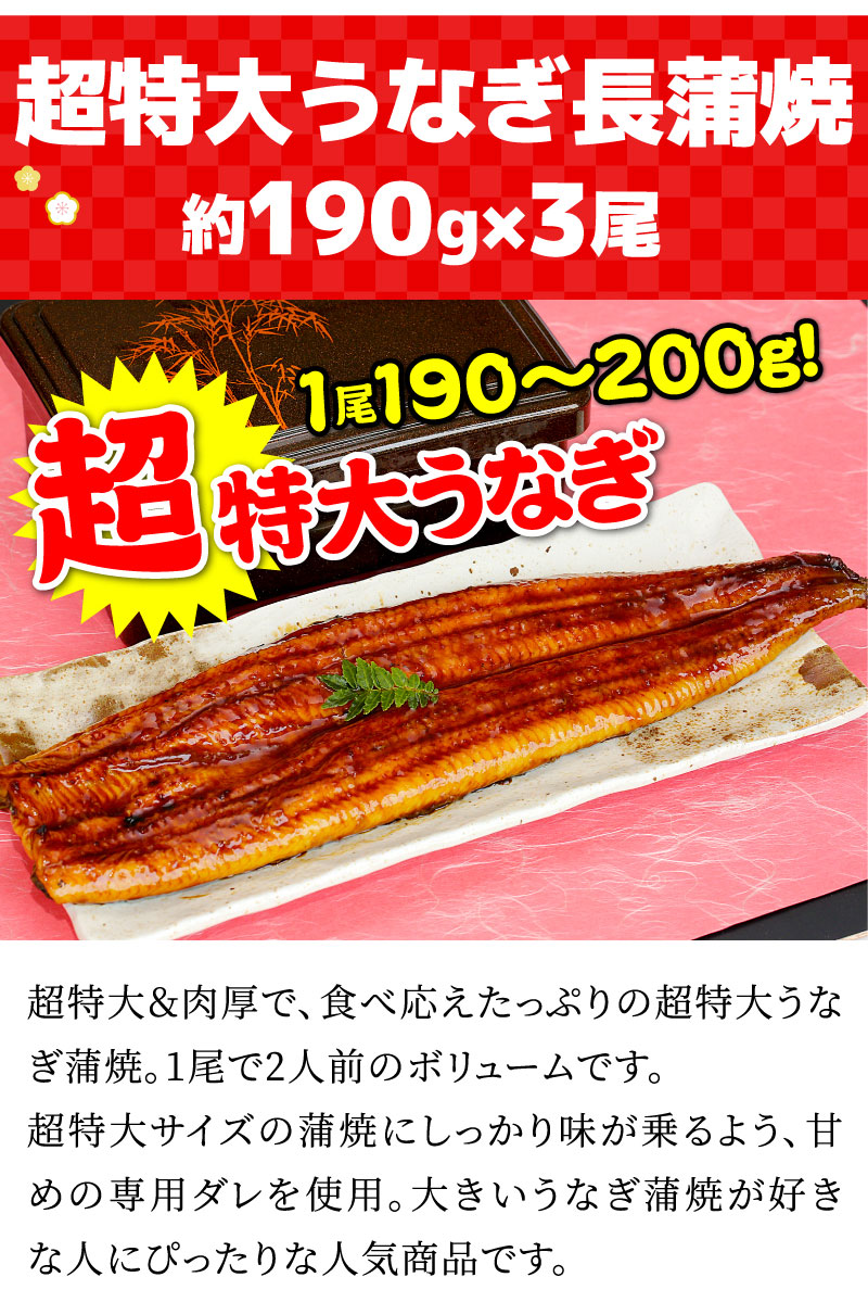 ●超特大うなぎ長蒲焼(約190~200g)×3尾