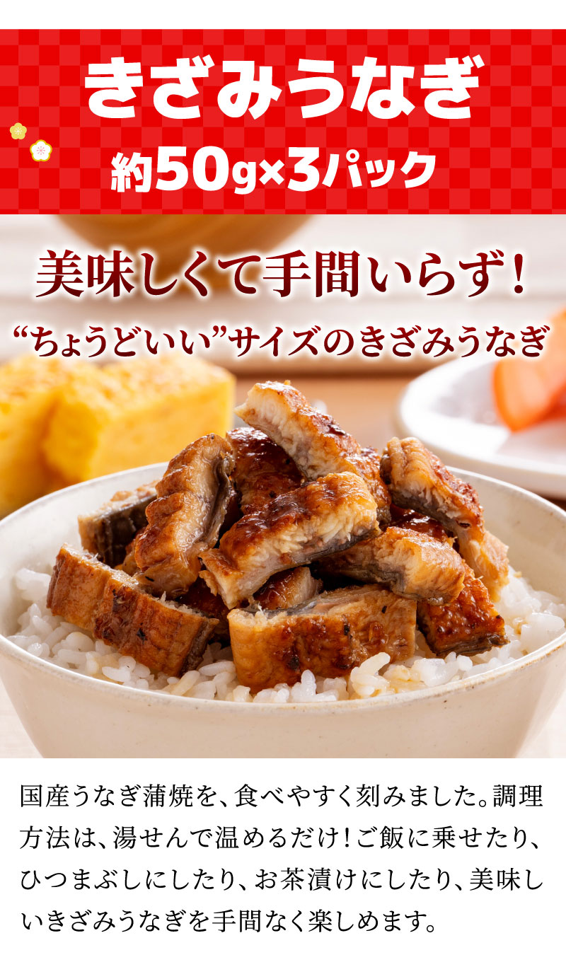 前に 一度 購入させて頂きましたが とても美味しい うなぎでしたので 再度購入させて頂きました 今度は 刻みもついているので楽しみにしています