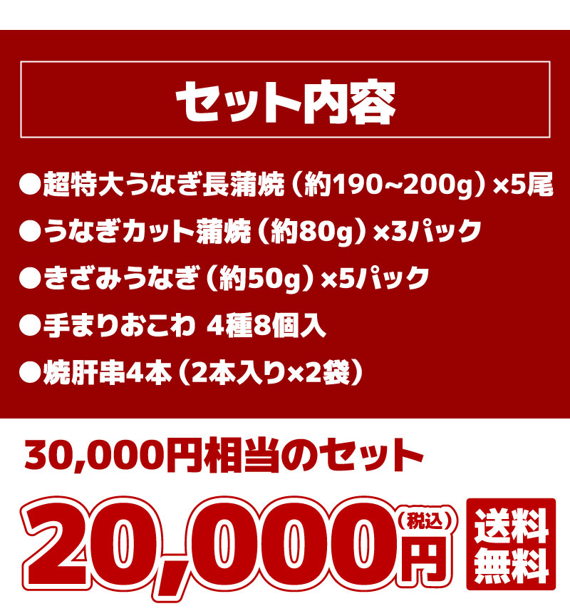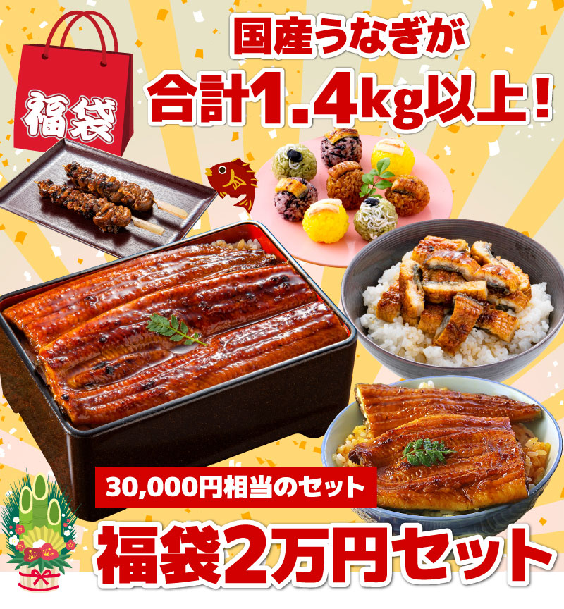 30,000円相当!合計1.4kg以上の国産うなぎが入った豪華うなぎ福袋。 |