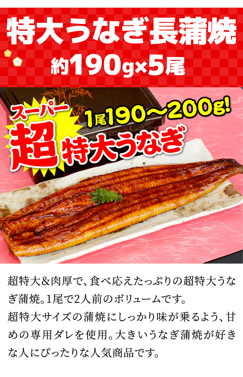 ●超特大うなぎ長蒲焼(約190~200g)×5尾