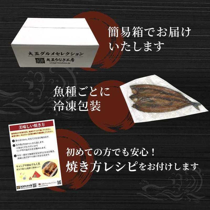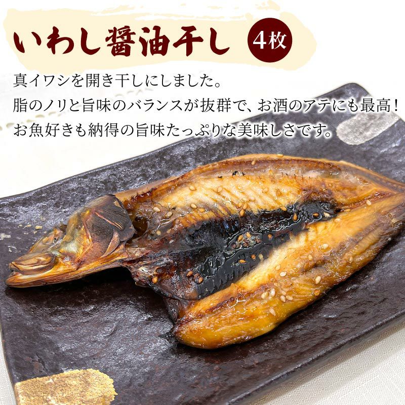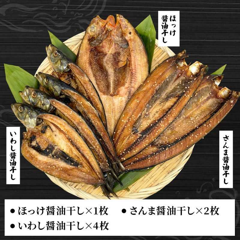 ほっけ醤油干し(約240g)×1、さんま醤油干し(約90g)×2、いわし醤油干し(約90g)×4