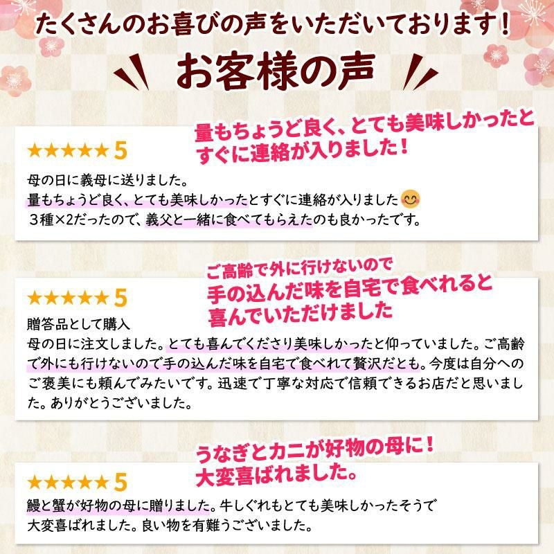 うなぎおこわ110g×2食、かにおこわ110g×2食、牛しぐれおこわ110g×2食 |