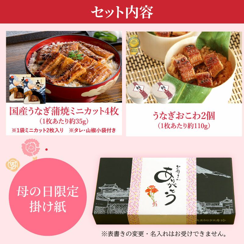 【母の日ギフト】国産うなぎ蒲焼ミニカット4枚 & うなぎおこわ2個