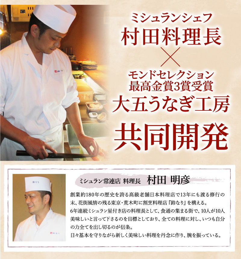モンドセレクション金賞受賞!ミシュラン常連店「鈴なり」の村田料理長監修のうなぎ蒲焼き。