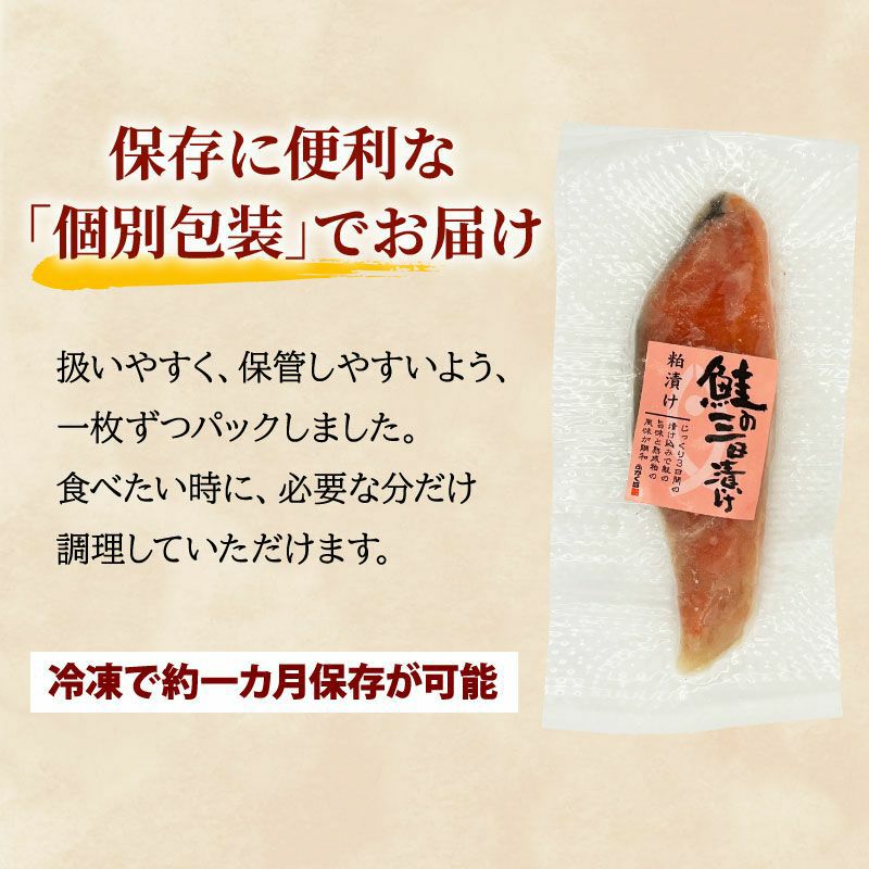 酒粕漬け、西京味噌漬けの切身は、72時間しっかり漬け込んでからお届けします。こだわりの酒粕や西京味噌のうま味を、魚にしっかり染み込ませた商品化です。焼く際に、漬け魚は非常に焦げやすいのですが、当店の漬け魚は、酒粕や味噌をふき取ってもしっかり味が残ります。
