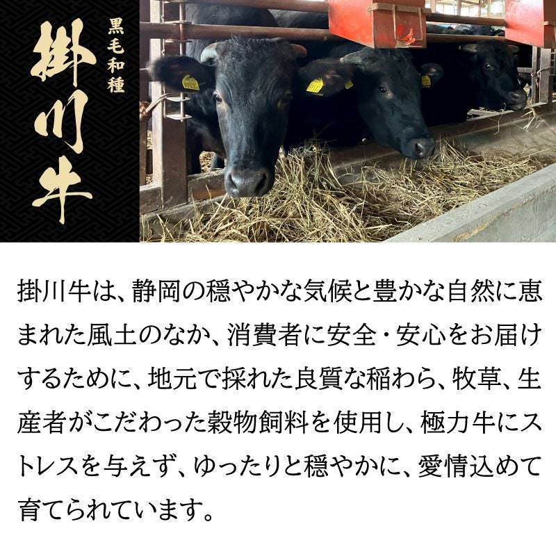 A5・A4黒毛和牛の高級部位、肩ロースをスライス。霜降りのやわらかな食感と濃厚な味わいが特徴で、すき焼きやしゃぶしゃぶにお薦めです。3年連続農林水産大臣賞受賞・掛川牛100%使用。静岡の穏やかな気候と豊かな自然に恵まれた風土の中、地元でとれた良質な稲わら、牧草、生産者がこだわった穀物飼料を与え、愛情込めて育てられています。