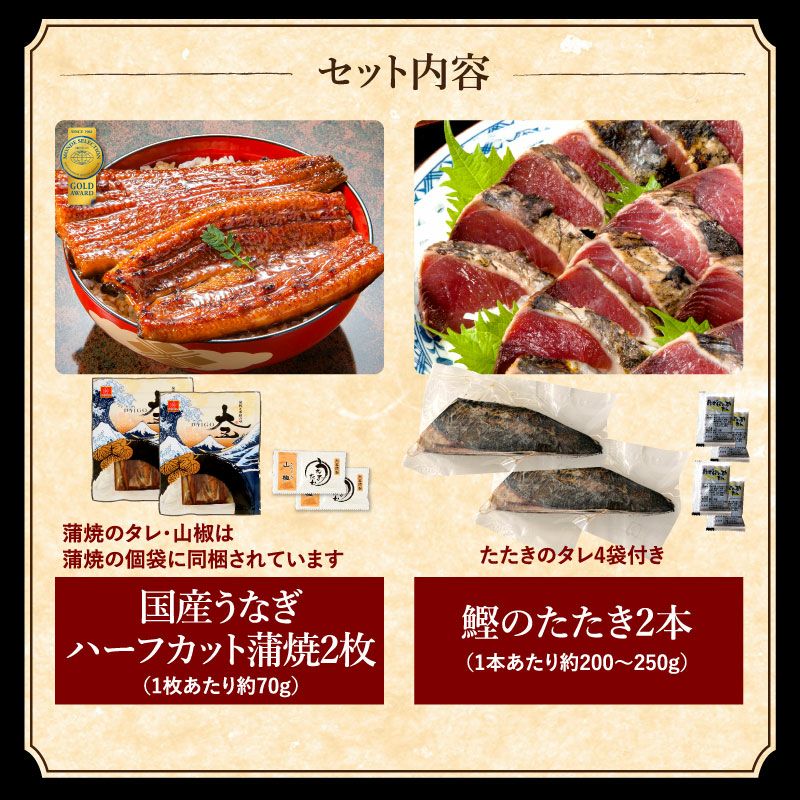 国産うなぎ蒲焼きハーフカット2枚&かつおのたたき2本