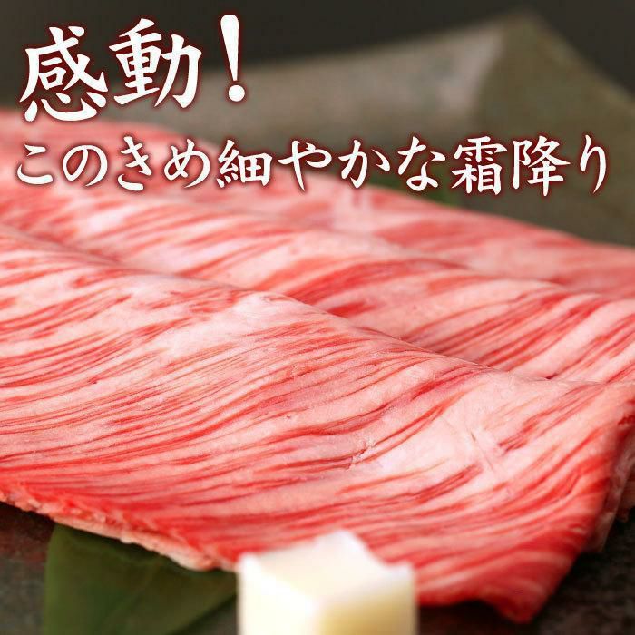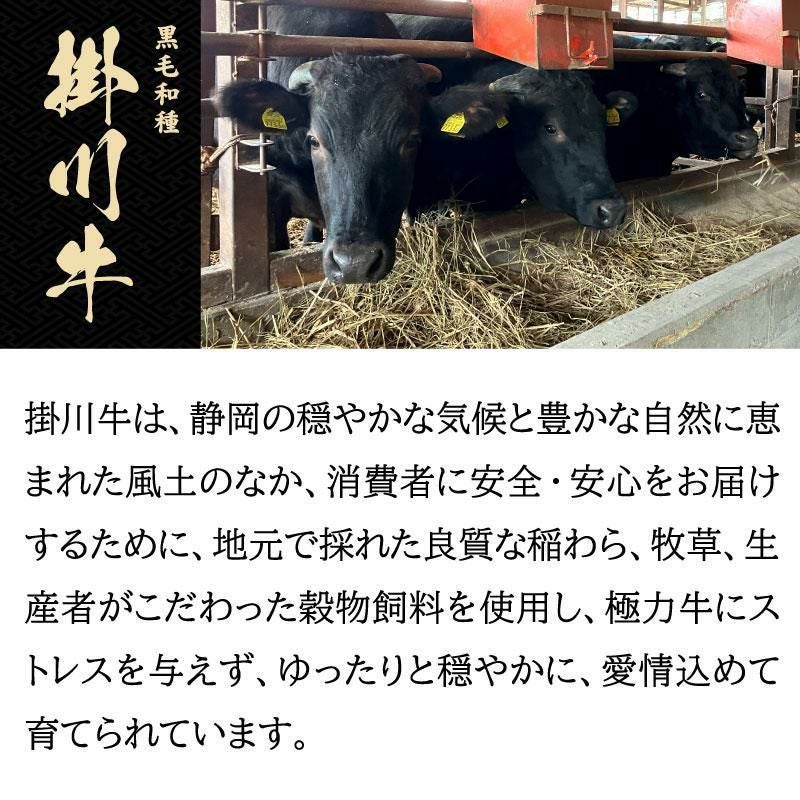 A5・A4黒毛和牛の高級部位、肩ロースをスライス。霜降りのやわらかな食感と濃厚な味わいが特徴で、すき焼きやしゃぶしゃぶにお薦めです。3年連続農林水産大臣賞受賞・掛川牛100%使用。静岡の穏やかな気候と豊かな自然に恵まれた風土の中、地元でとれた良質な稲わら、牧草、生産者がこだわった穀物飼料を与え、愛情込めて育てられています。