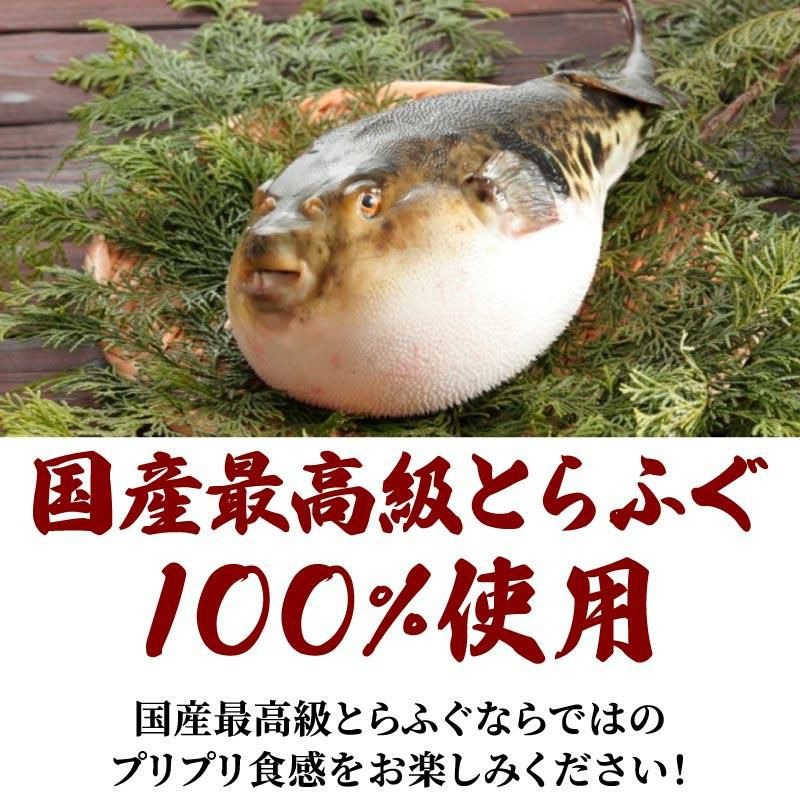 国産最高級とらふぐ100%使用。国産最高級とらふぐならではのプリプリ食感をお楽しみください!