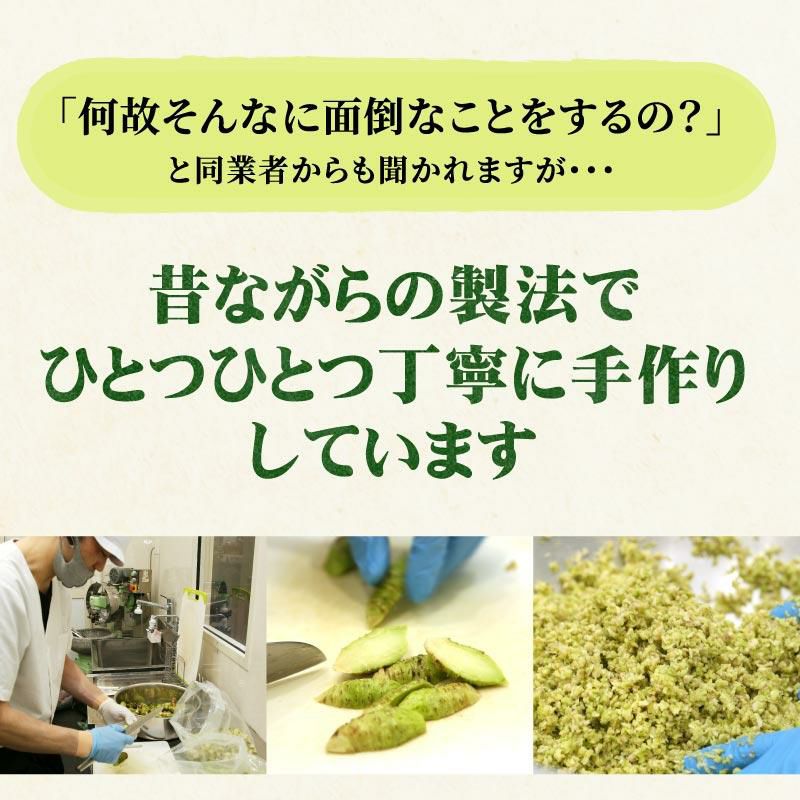 他の画像を見る バランスの良い辛さ!静岡産の本わさびを贅沢に使った手作りワサビ漬け こだわり店主の手作りわさび漬け 中辛口70g×2個 野櫻本店 のし対応 クール便でお届け 販売価格 ¥ 3,780 税込 詳細を見る お気に入りに登録する