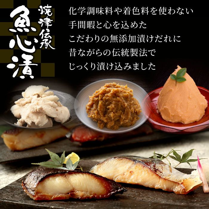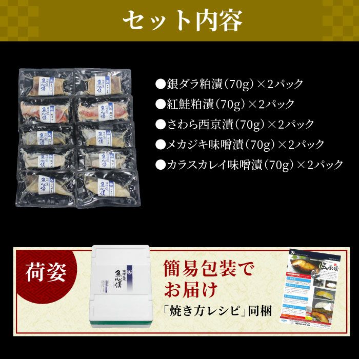 焼津伝承 魚心漬 5種10切れセット[銀ダラ粕漬、紅鮭粕漬、サワラ西京漬、メカジキ味噌漬、カラスカレイ味噌漬]