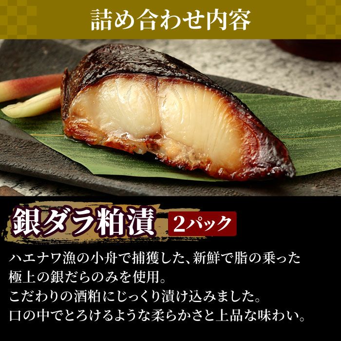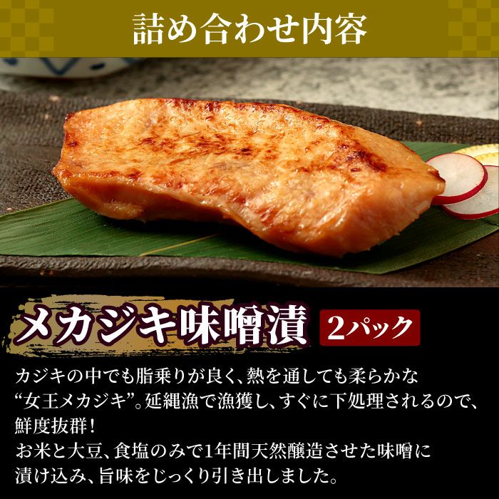 ●メカジキ味噌漬:約70g×2 ●紅鮭粕漬:約70g×2 ●サワラ西京漬:約70g×2 ●銀ダラ粕漬:約70g×2 ●カラスカレイ味噌漬:約70g×2