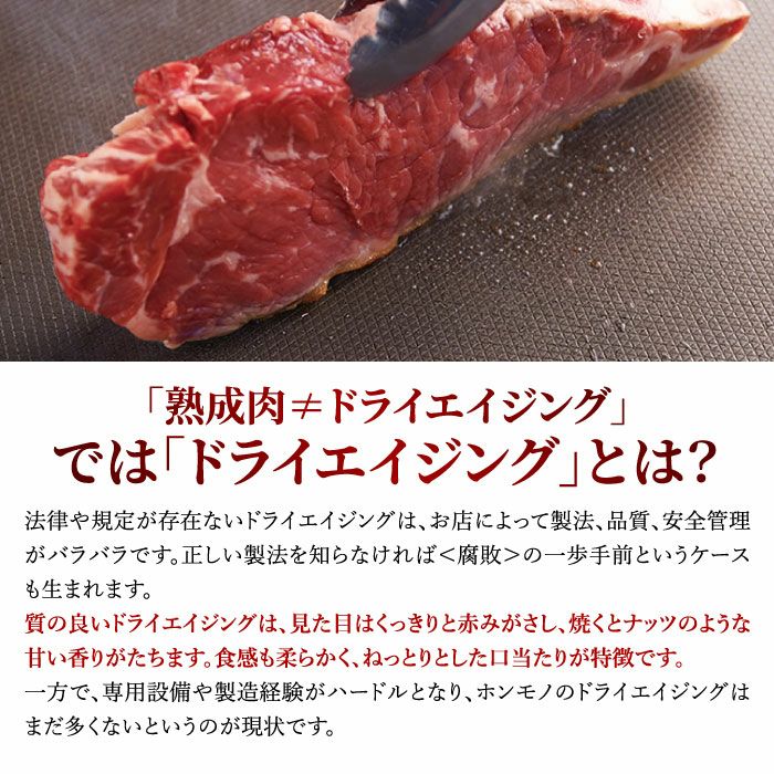 40日間長期乾燥熟成。牛肉の本来の旨味とふくよかな香り
