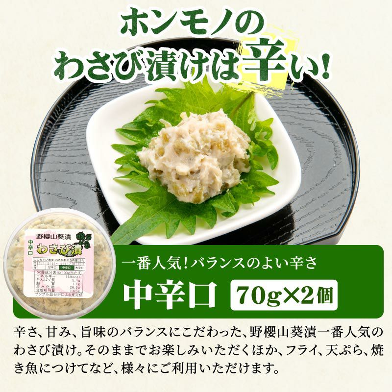 他の画像を見る バランスの良い辛さ!静岡産の本わさびを贅沢に使った手作りワサビ漬け こだわり店主の手作りわさび漬け 中辛口70g×2個 野櫻本店 のし対応 クール便でお届け 販売価格 ¥ 3,780 税込 詳細を見る お気に入りに登録する