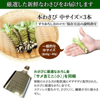 他の画像を見る 本わさびと専用おろし金のセット わさび栽培発祥の地「有東木」の本わさび 中サイズ3本とさめ吉(ミニ)セット 簡易梱包 クール便でお届け 販売価格 ¥ 7,600 税込 詳細を見る お気に入りに登録する