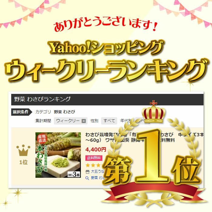 わさび栽培発祥の地「有東木(うとうぎ)」の本わさび<中サイズ>3本セット |