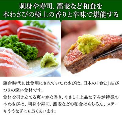 独自のこだわり品種改良を重ねることで、栽培する農家ごとに本わさびの味はことなります。本商品は、和食専門店などに評価の高いマルマサ山葵農園の本わさびです。
