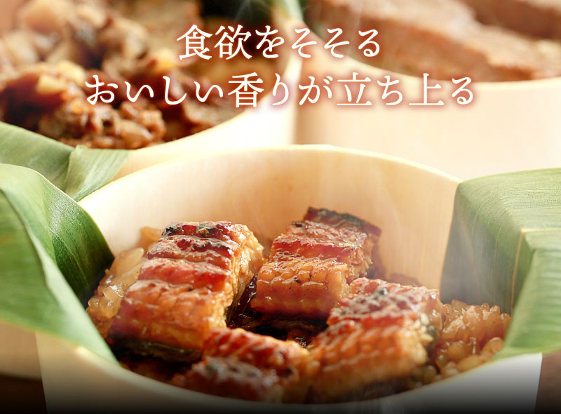 甘辛おこわに、うなぎ蒲焼のコクと 風味が贅沢に香ります。