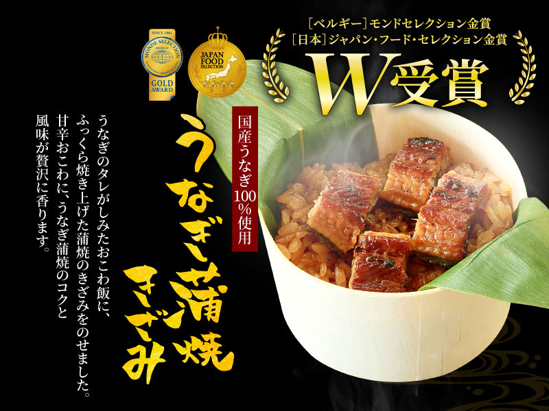 もち米(国産米)、うるち米(国産米)、うなぎ(国産)、しょうゆ(小麦・大豆を含む)、みりん、発酵調味料、砂糖、水あめ/カラメル色素、酒精、調味料(アミノ酸等)、増粘剤(加工でん粉)、ビタミンB1