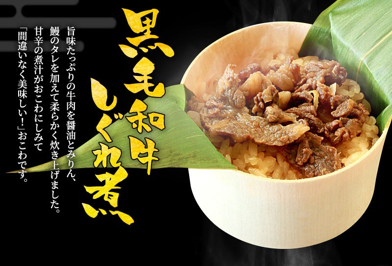 旨味たっぷりの牛肉を醤油とみりん、鰻のタレを加えて柔らかく炊き上げました。甘辛の煮汁がおこわにしみて「間違いなく美味しい!」おこわです。
