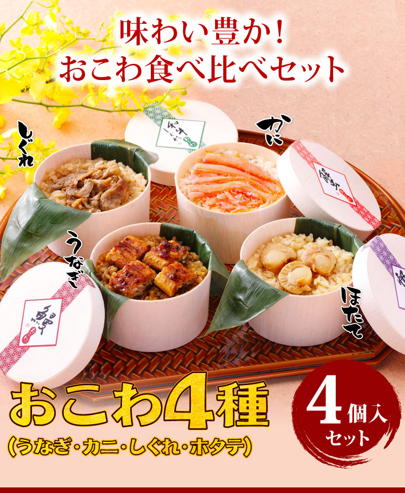 おこわ4種セット(うなぎ・かに・しぐれ・ほたて) |