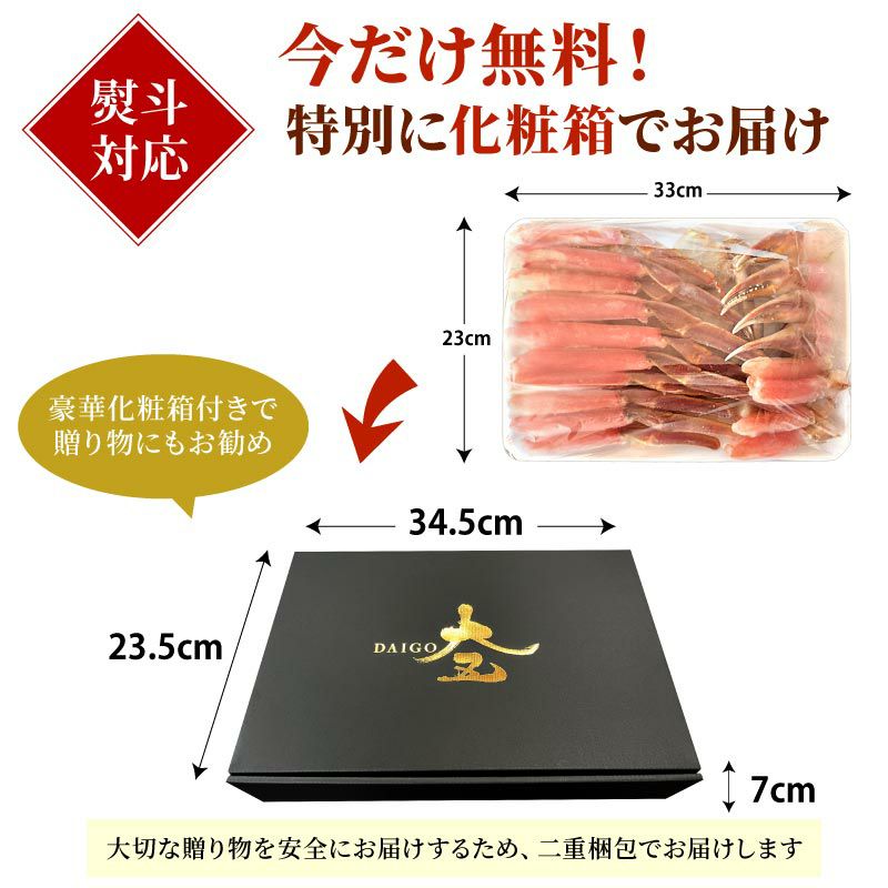 オホーツク海のさらに北部のマガダン海域は、大型のカニが獲れる最高の漁場です。マガダン産ズワイガニは甘みが強く、ぷりぷりな身がたっぷり詰まっています。さらに、800g以上の特大で、身入率80%以上のカニだけを厳選!身がぎっしりと詰まっています。