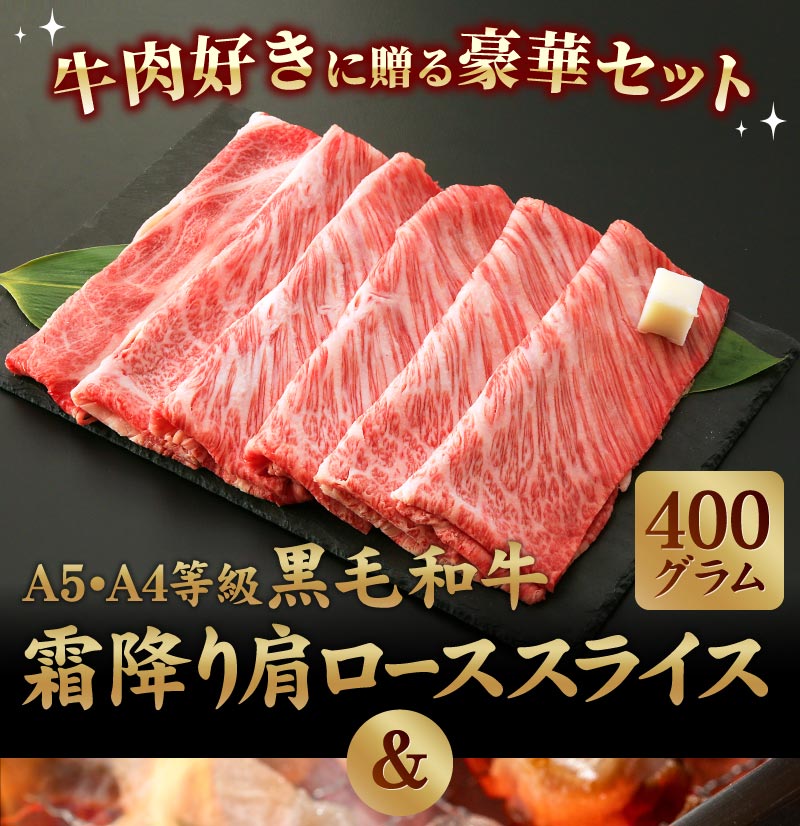A5・A4等級 黒毛和牛霜降り肩ローススライス400g&厳選国産牛 特選ホルモン600gセット