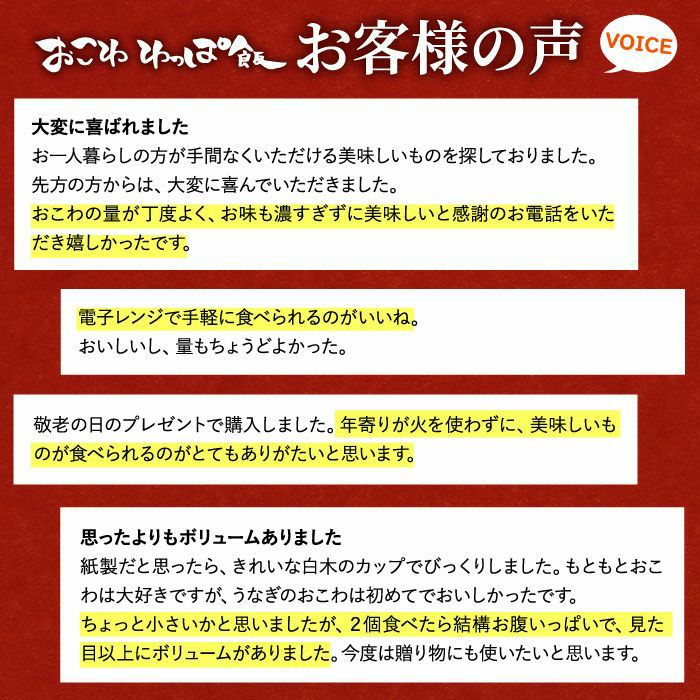 うなぎおこわ110g×1食、かにおこわ110g×1食、しぐれおこわ110g×1食、ほたておこわ110g×1食 |
