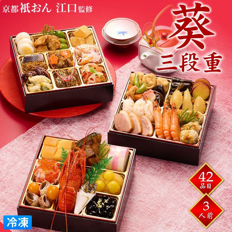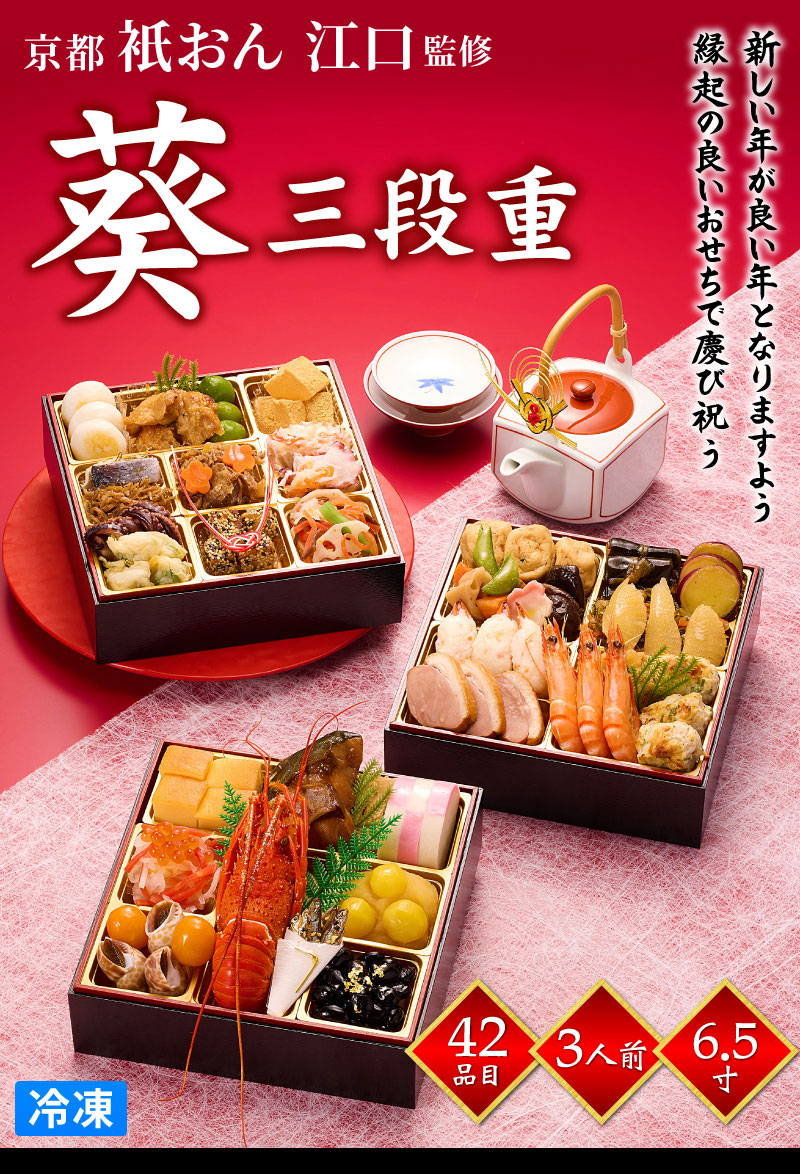 2026おせち 祇おん江口監修 「葵 三段重」 (6.5寸 紙三段重) |
