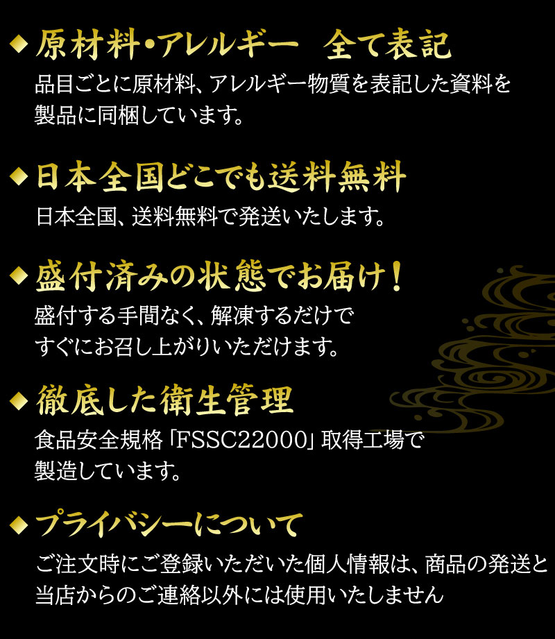 小麦、卵、乳成分、えび、かに、いか、いくら、りんご、桃、牛肉、さば、大豆、鶏肉、豚肉、ゼラチン、ごま |