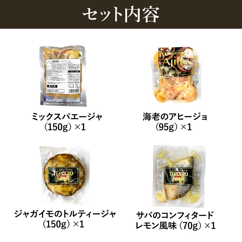 東京品川エリアで注目のスペインバル「Mon-TERCERO(モン・テルセーロ)」のシェフ監修スペイン料理セットです。お店の味をそのままに、人気のミックスパエージャや食材の旨みをたっぷり引き出したアヒージョなど、お家でスペインバルが楽しめます。オードブルとして、クリスマスや年末年始などのホームパーティーに大活躍!お歳暮ギフトや誕生日プレゼントにもオススメです。