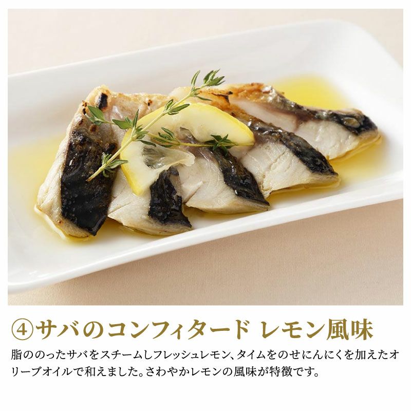 脂ののったサバをスチームしフレッシュレモン、タイムをのせにんにくを加えたオリーブオイルで和えました。さわやかレモンの風味が特徴です。