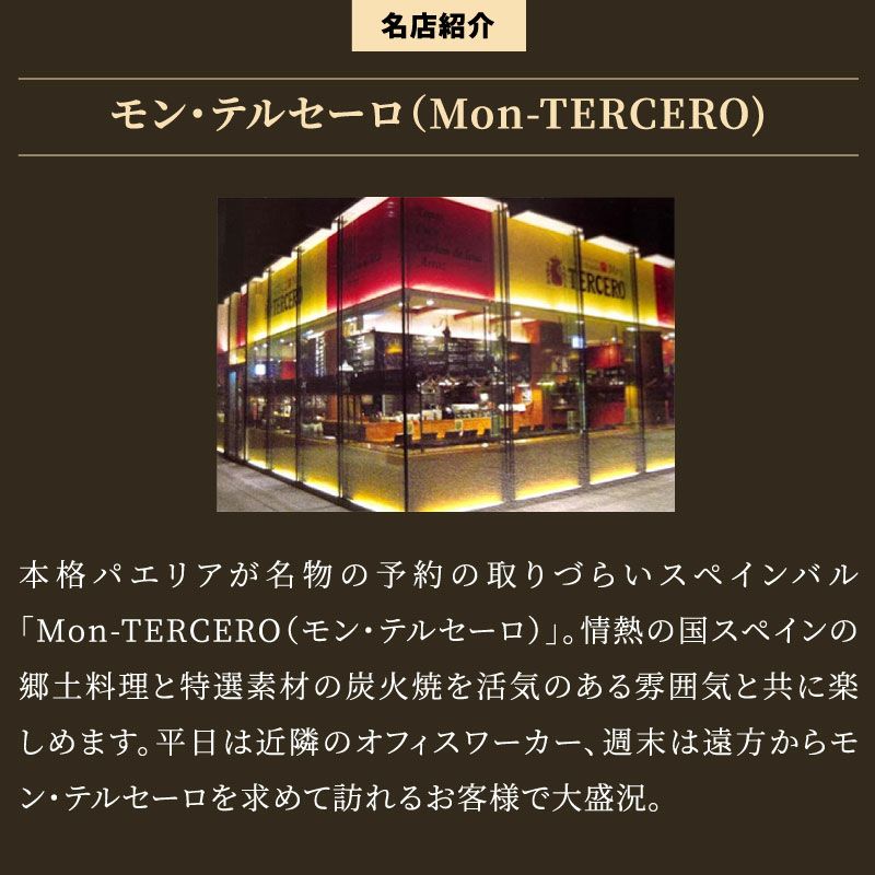 本格パエリアが名物の予約の取りづらいスペインバル「Mon-TERCERO(モン・テルセーロ)」。情熱の国スペインの郷土料理と特選素材の炭火焼を活気のある雰囲気と共に楽しめます。平日は近隣のオフィスワーカー、週末は遠方からモン・テルセーロを求めて訪れるお客様で大盛況。