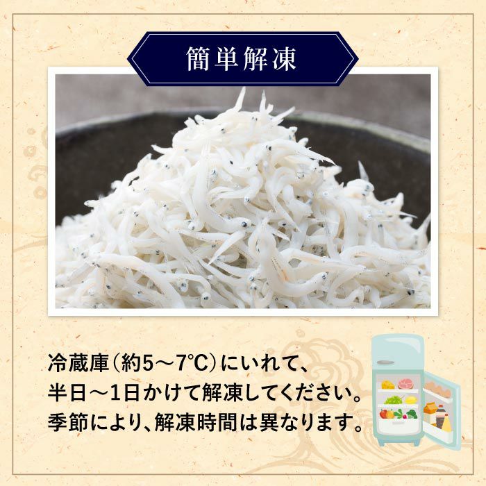 他の画像を見る しらすの町 静岡県用宗港(駿河湾)の厳選しらす [無添加&無漂白] 釜揚げしらす 1kg (250g×4) [特A品質] 【冷凍】 簡易梱包 クール便でお届け 販売価格 ¥ 7,280 税込 詳細を見る お気に入りに登録する