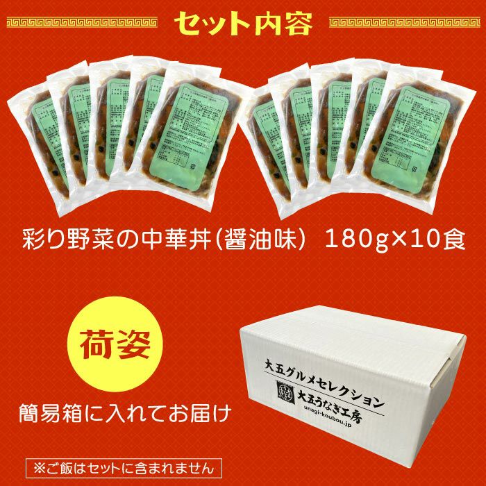他の画像を見る 野菜たっぷり!ご飯にかけるだけで本格中華丼 青山シャンウェイ 彩り野菜の中華丼 醤油味 10食セット 簡易梱包 クール便でお届け 販売価格 ¥ 4,980 税込 カートに入れる お気に入りに登録する