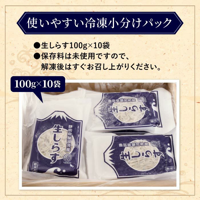 他の画像を見る 旬の産地でしか味わえなかった 幻の味覚 用宗港(静岡県駿河湾)鮮度が命の生しらす 1kg(100g×10)【冷凍】 簡易梱包 クール便でお届け 販売価格 ¥ 7,280 税込 詳細を見る お気に入りに登録する